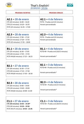 Descargar Calendario de exámenes That's English Febrero 2026 en PDF
